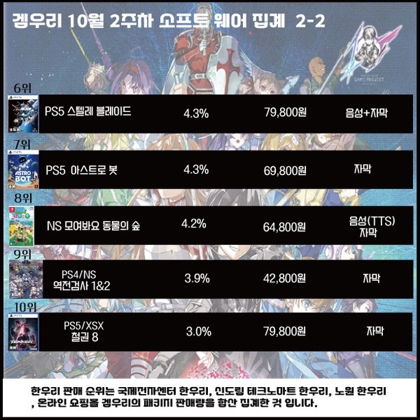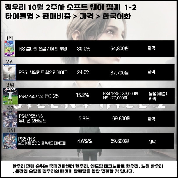 2024년 8월부터 한우리 인스타그램에서 판매 순위를 공개하고 있습니다. 구글 검색으로 KONSOLER 아카이브에 들어오시는 분들이 게임 판매 현황, 인기 순위 등을 파악하실 수 있도록 이미지 형식의 글로 남겨두겠습니다.