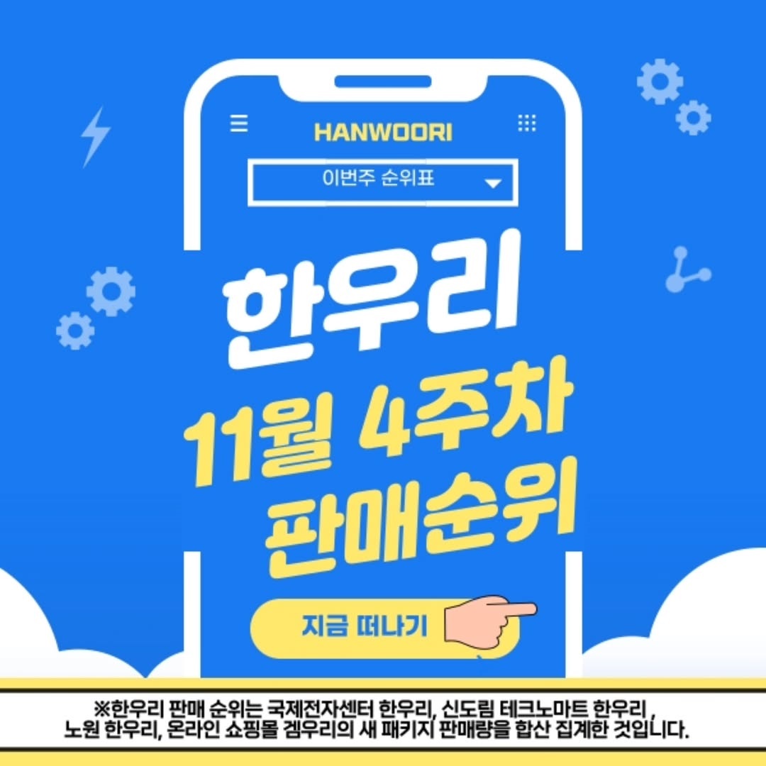 | 2024년 11월 1주차 한우리 판매 순위 (0) | 2024.11.06 |