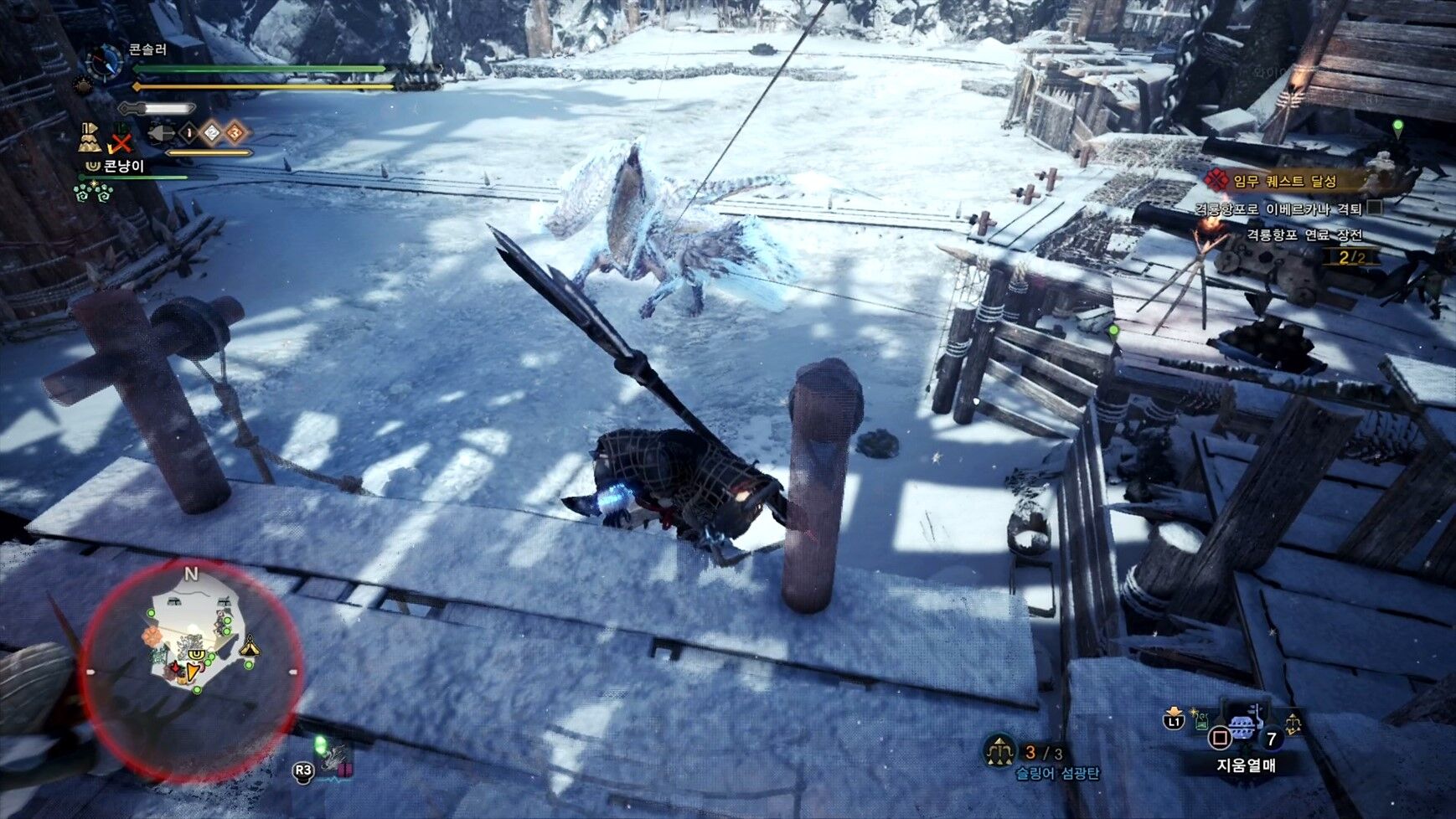 - 체력이 떨어지면 3번 지역으로 이동하며 사냥 또는 포획하면 퀘스트 클리어
