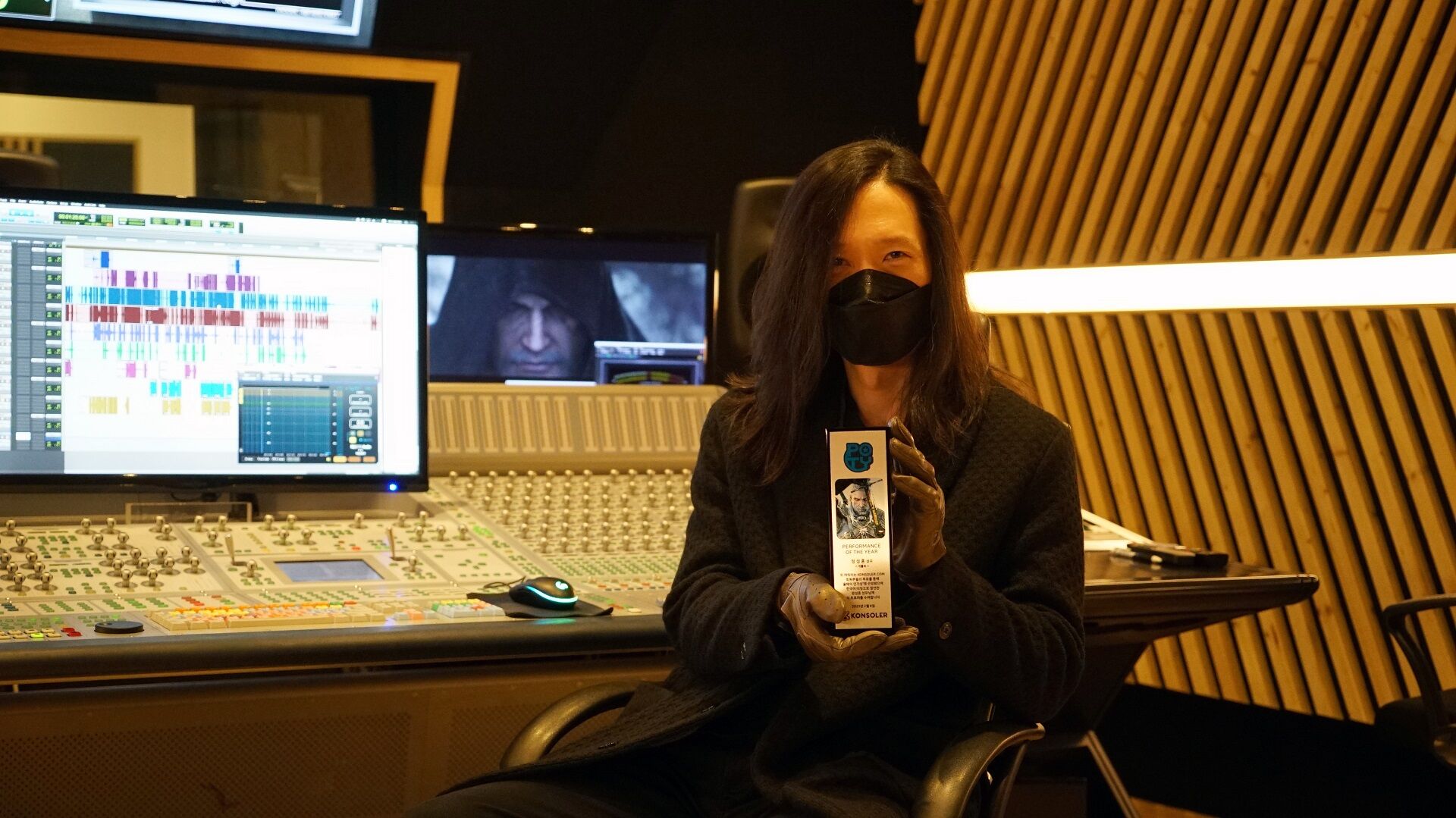 안녕하세요? 무사이 스튜디오 오디오 디렉터 마이클 공입니다. 이번 수상은 정말이지 완벽한 레시피로 만들어졌습니다. 스텝 분들의 피와 땀은 물론이고 에너지 드링크와 라면까지 뭐 하나 안 들어간 게 없거든요. 저를 포함한 모든 스텝들이 주름이 늘어가는 소리가 들리는 듯합니다. 그래도 이런 뜻깊은 상을 받을 수 있다면 주름 한두 개 늘어나는 것쯤 이야 별거 아니라고 생각합니다. 이 자리를 빌려 작품에 참여했던 저희 모든 스텝분들 모두 정말 고생 많으셨다는 말을 전하고 싶습니다.