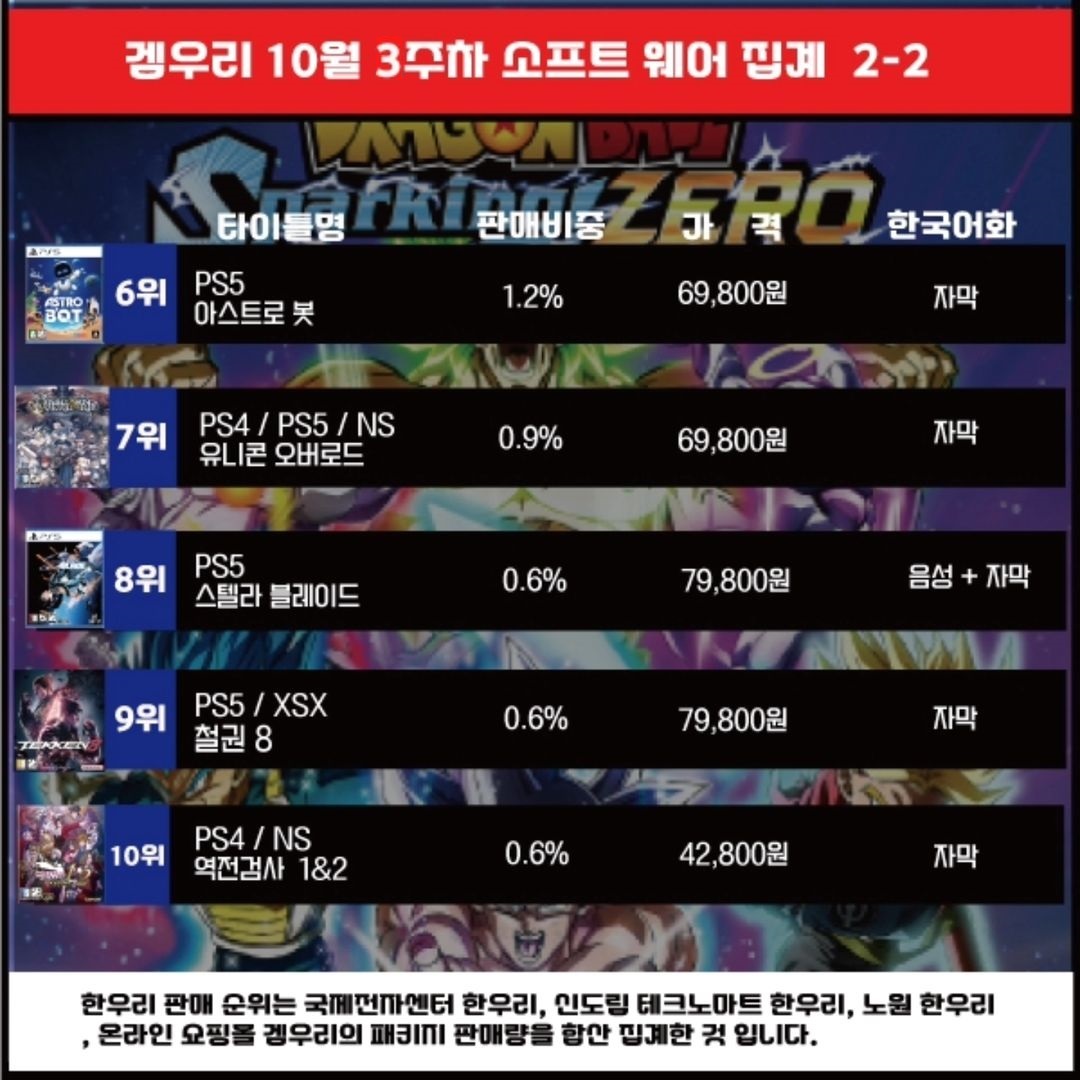 2024년 8월부터 한우리 인스타그램에서 판매 순위를 공개하고 있습니다. 구글 검색으로 KONSOLER 아카이브에 들어오시는 분들이 게임 판매 현황, 인기 순위 등을 파악하실 수 있도록 이미지 형식의 글로 남겨두겠습니다.